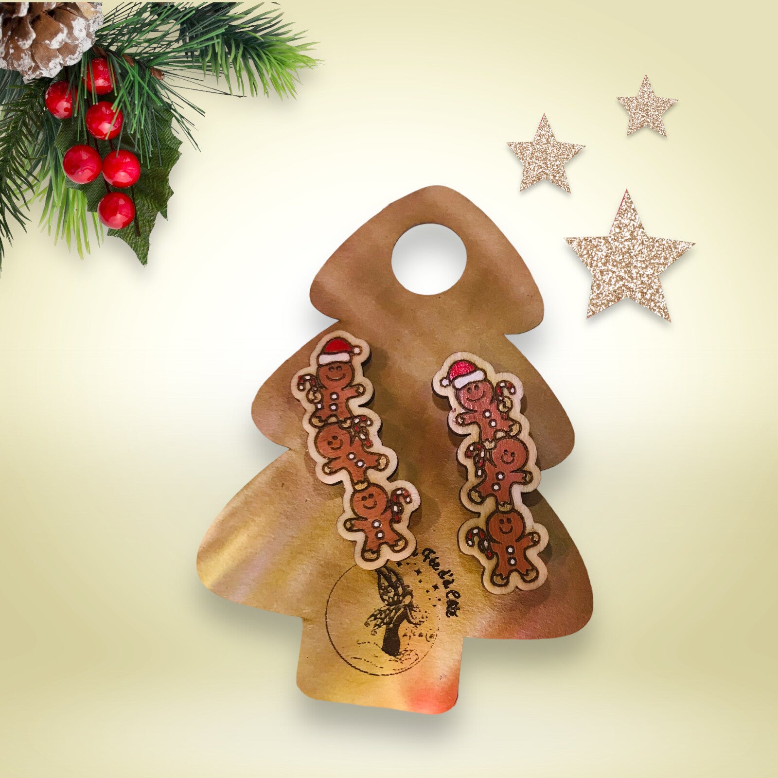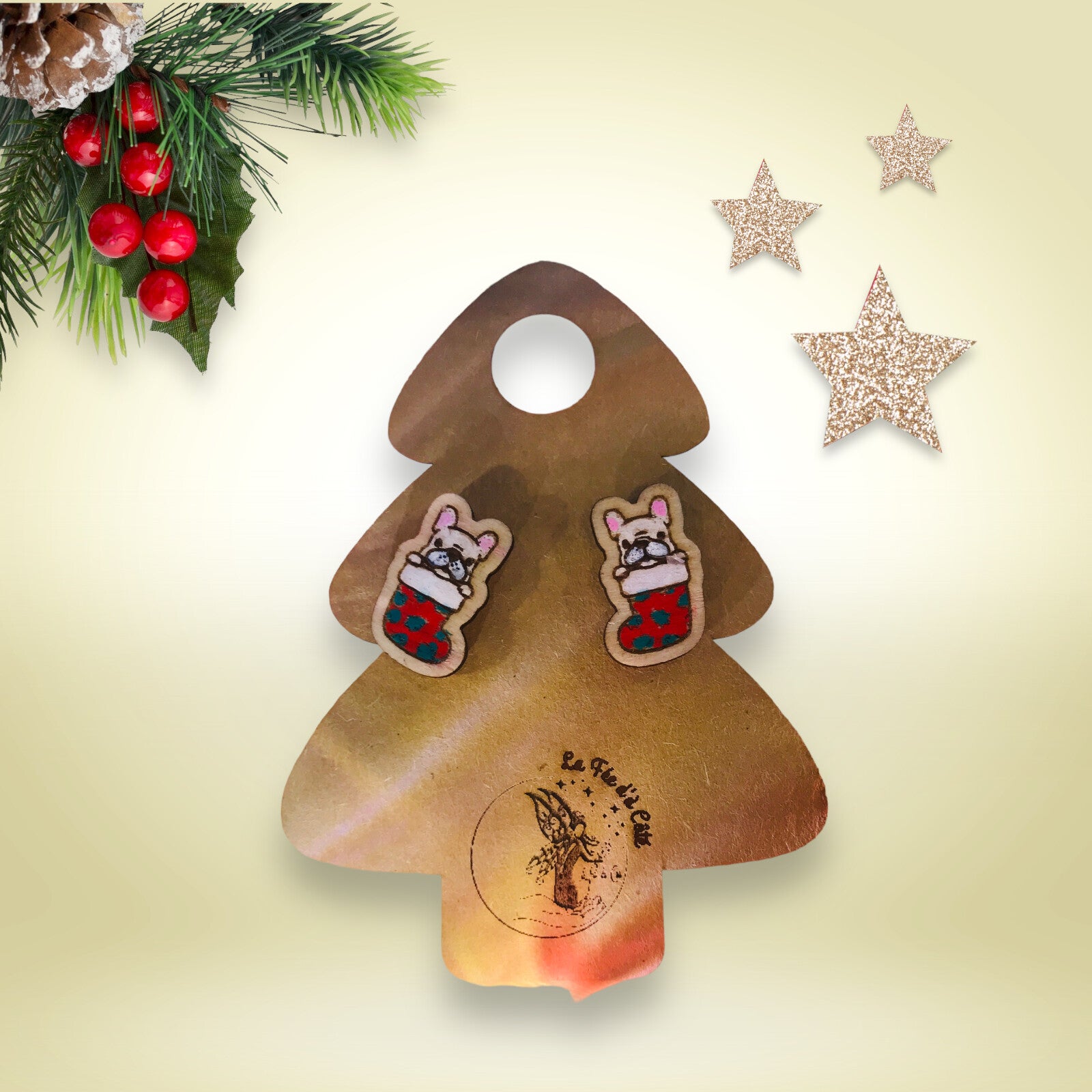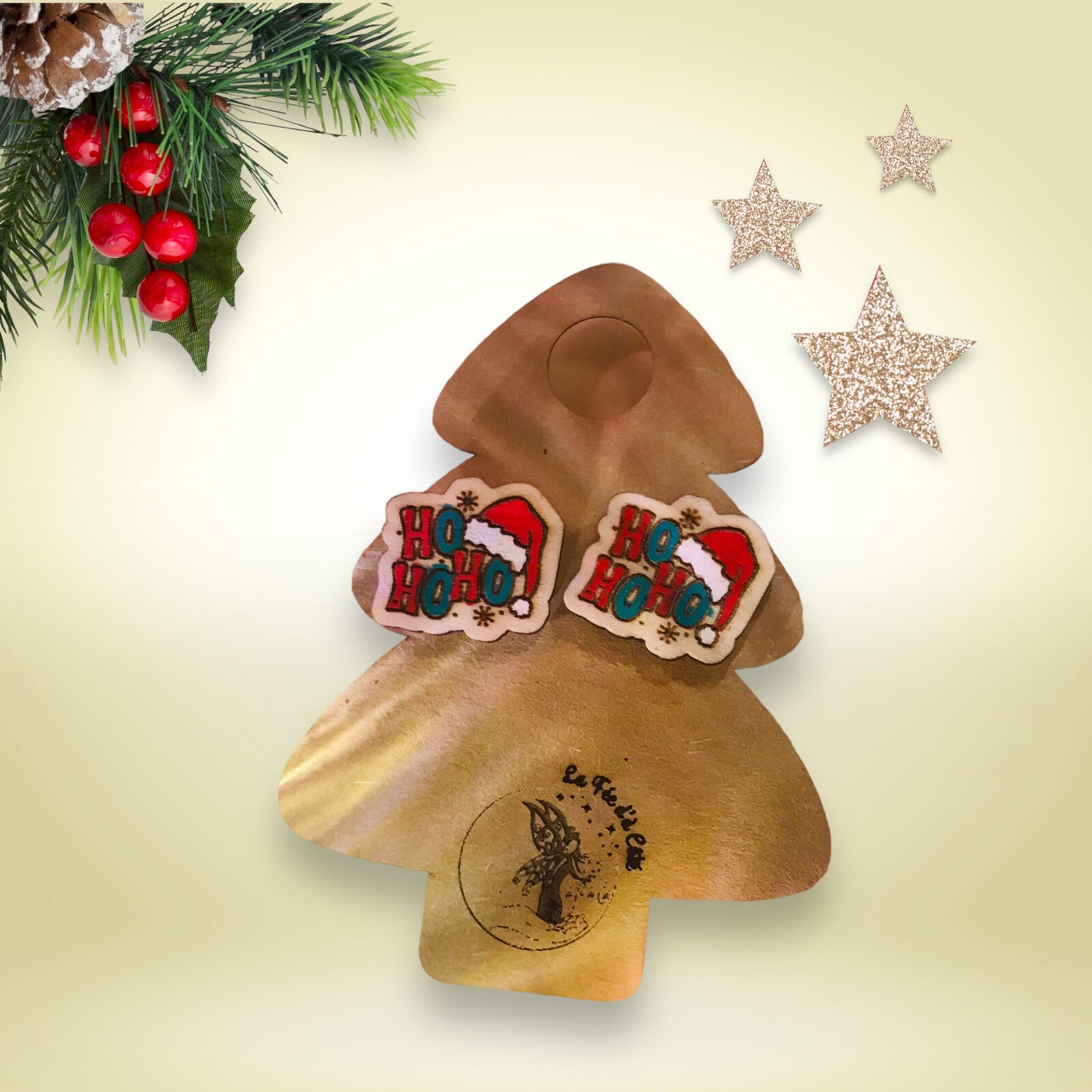 Ces magnifiques petites boucles d'oreilles de Noël en bois sont peintes à la main.